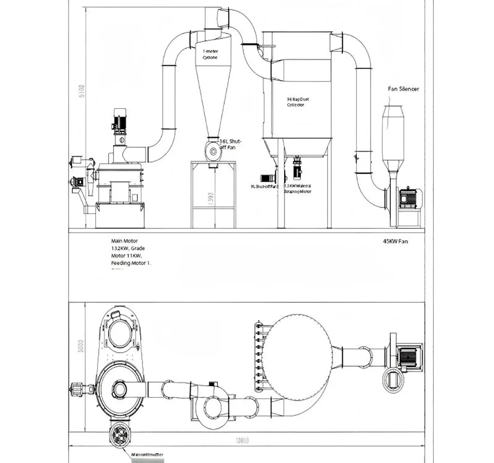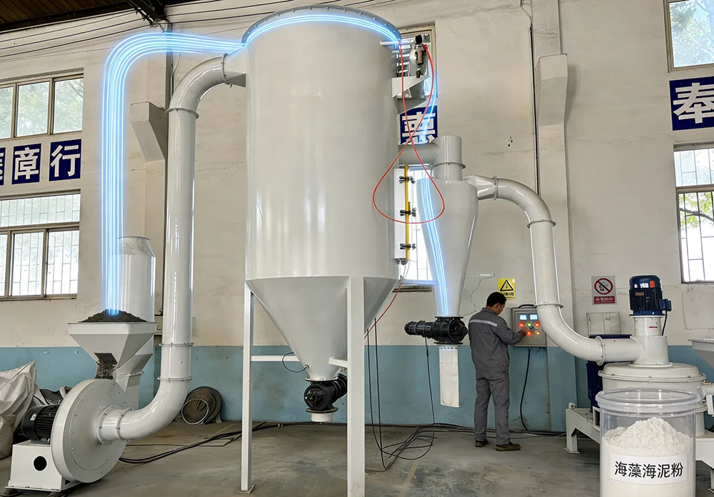 Az ultrafinom őrlőegység egy adagolórendszerből, egy őrlőrendszerből és egy osztályozó rendszerből áll. Az anyagok aprítása és osztályozása ugyanabban a kamrában történik.